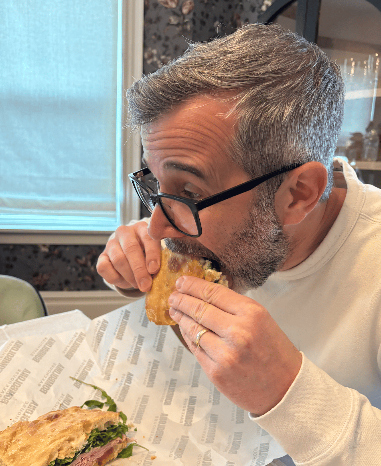 Adam realizing he needs to get a photo of this sandwich after he’s already taken a bite.