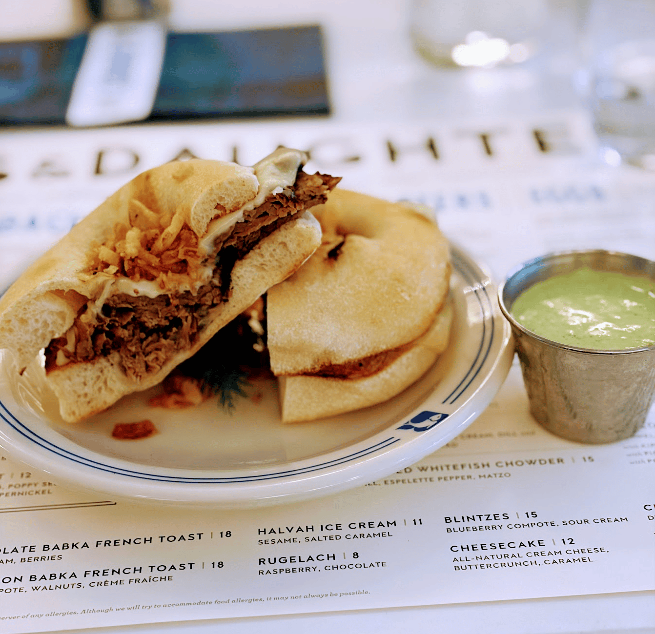 I was pretty excited about my order, especially because it came on a freshly baked bialy, and with a side of Zhug sauce (think cilantro and spicy green peppers). But something felt off about being there and ordering a brisket sandwich at 10:30am. I needed to better honor the history of Russ & Daughters, and so I also ordered their Pickled Herring Trio.